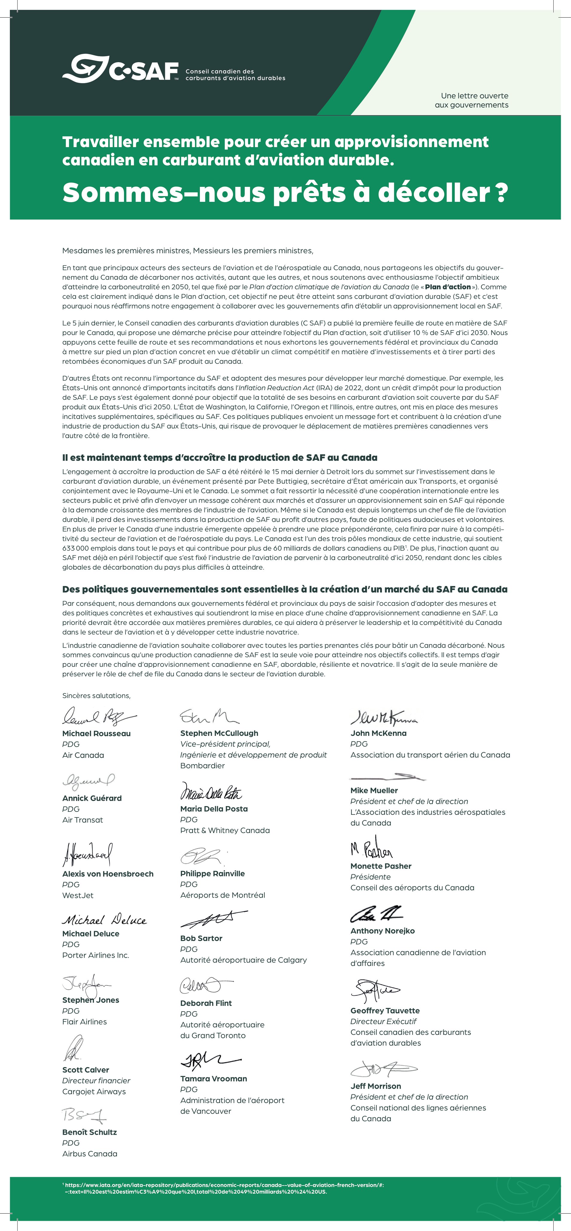 C-SAF vise à faciliter et à accélérer le déploiement commercial de SAF au Canada.